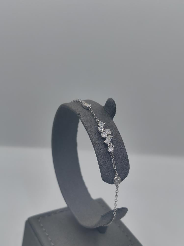 تعتمد السوارة على ترتيب متناغم من الكريستالات اللامعة بتصميم يشبه العنقود، ما يمنحها بريقًا ناعمًا يعكس الضوء بشكل جذاب دون مبالغة.