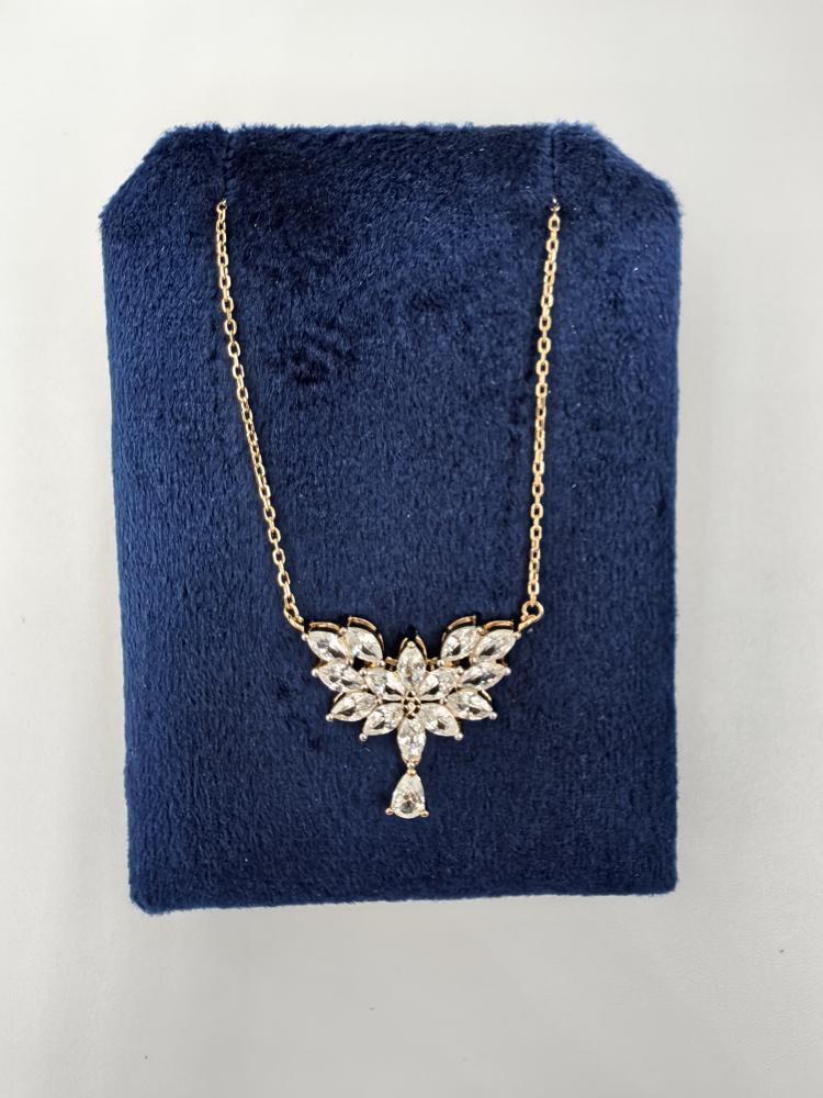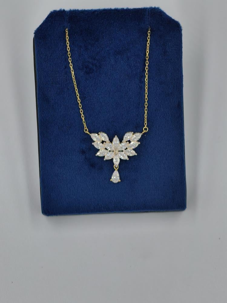 - تصميم فني مبهر: تصميم الفراشة يجمع بين قصات الزركون المختلفة ليمنح القلادة بريقاً استثنائياً.