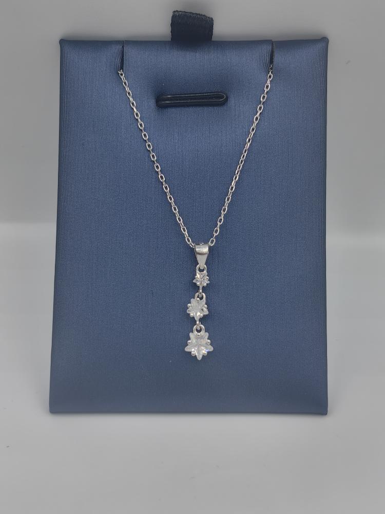 أضيئي ليلكِ ونهاركِ مع قلادة "شلال النجوم" الساحرة. تصميم يجسد جمال السماء المرصعة بالنجوم، حيث تتدلى ثلاث نجوم كريستالية متلألئة بأحجام متدرجة من سلسلة فضية رقيقة. كل نجمة مصممة لتعكس الضوء وتخلق بريقاً يأسر القلوب، لتكون هذه القلادة بمثابة أمنية جميلة تزين عنقك وترافقكِ أينما ذهبتِ.