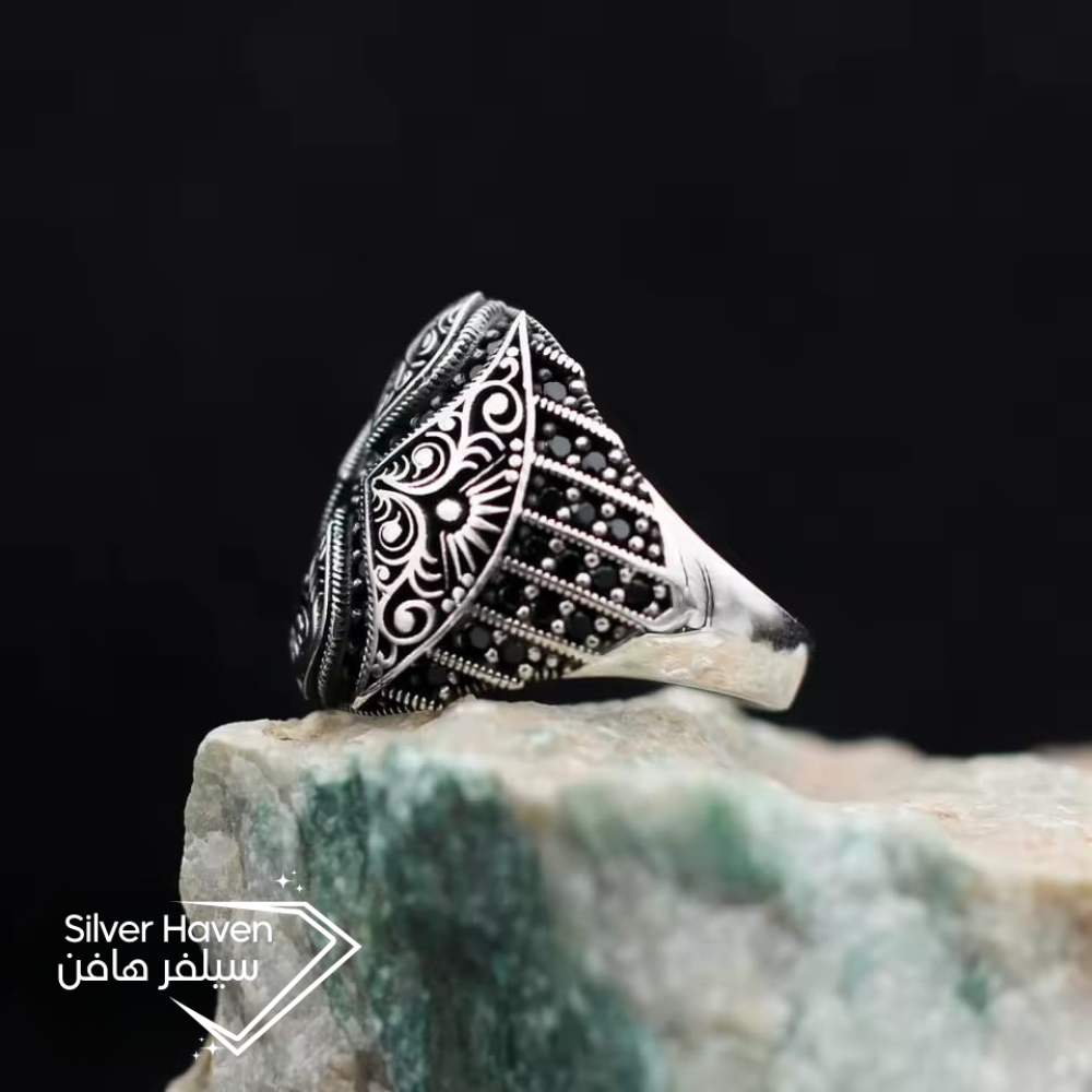 اطلب الآن خاتم الزركون الأسود من سيلفر هافن وتألق بإطلالة عصرية فاخرة تُبرز ذوقك الرفيع!