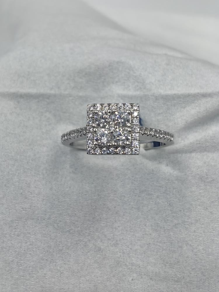 - بريق الهالة (Halo): تصميم الهالة المربعة يضاعف من حجم الخاتم ولمعانه بشكل مبهر.