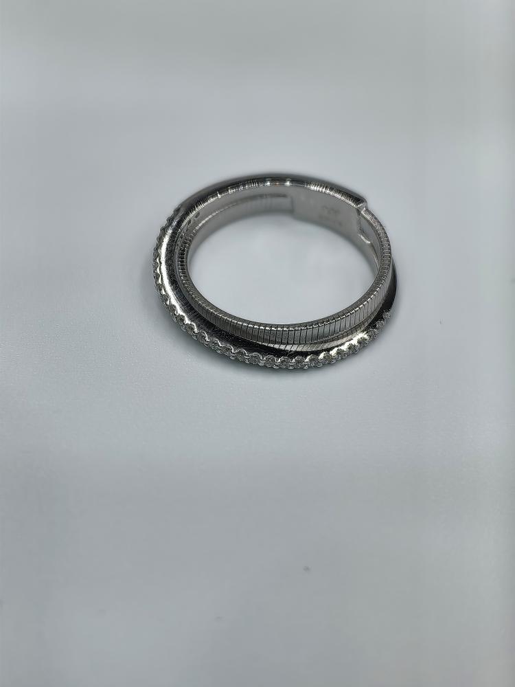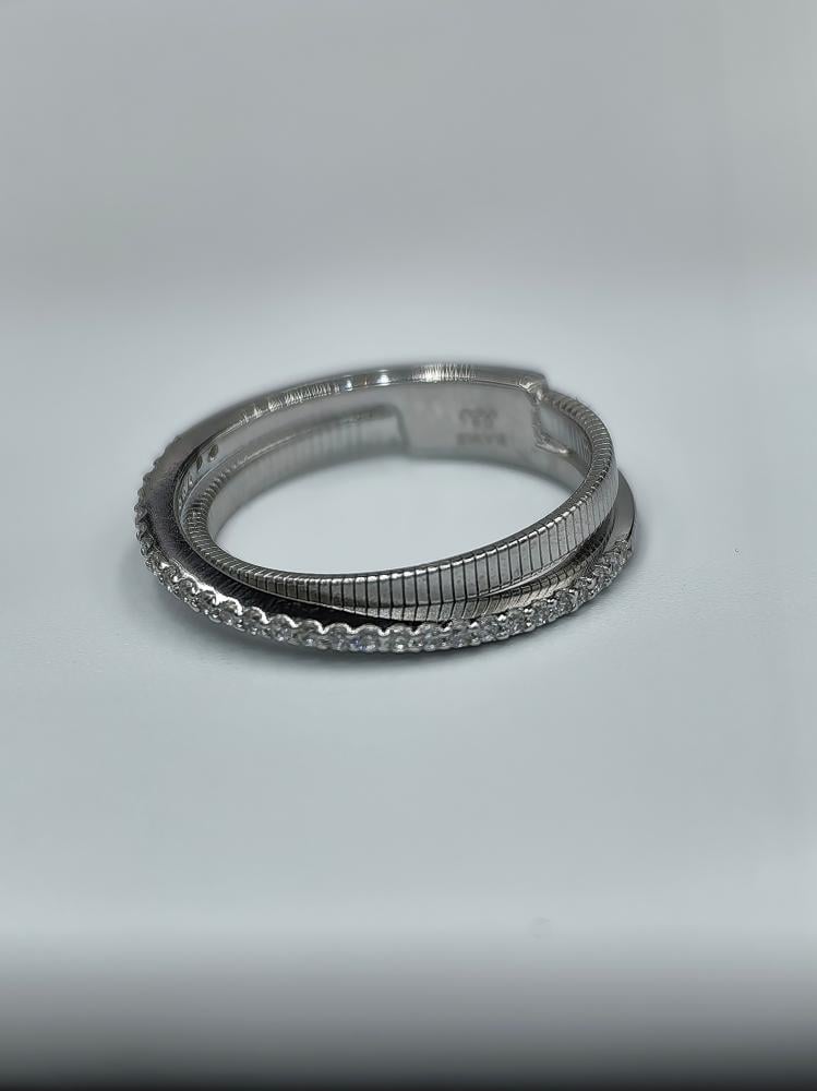 تألقي بقطعة فنية تجسد جمال التناقضات، مع هذا الخاتم المزدوج الذي يلتف حول إصبعكِ بأناقة. صُنع هذا الخاتم الاستثنائي من الفضة الإسترلينية الخالصة عيار 925، ليكون قطعة مجوهرات ثمينة تليق بذوقكِ الرفيع.