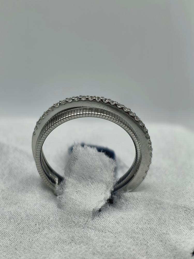 يتميز الخاتم بتصميمه المبتكر الذي يبدو كخاتمين متداخلين: